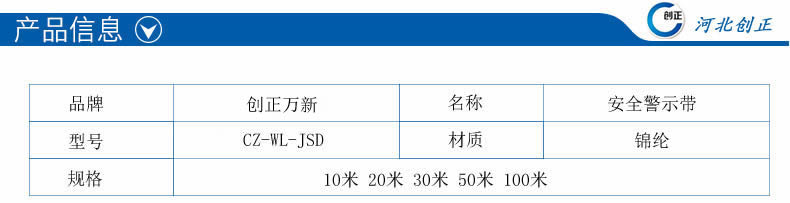 警示帶盒是ABS材料制成;帶是錦綸材質,上面印有“閃電符號,止步,高壓危險”等字樣。