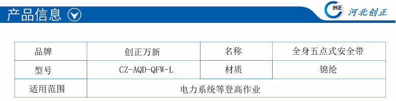 藍色全身五點式安全帶的詳細介紹: